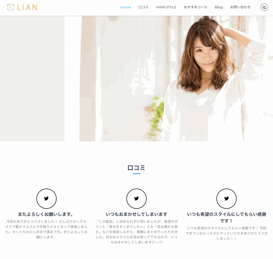 トップ画面において、メインビジュアルでスライダーの設定や口コミ情報を表示させました。これにより店舗に訪れ、サービスを受けたいと閲覧者に思ってもらえるようなデザインになりました。